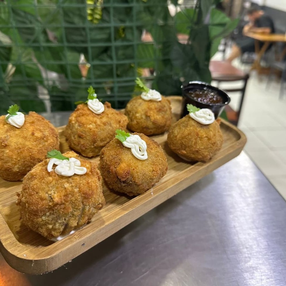 2 carnes de Picanha com 120g cada, queijo sem miséria , bacon , cheddar cremoso , ovo , cebola caramelizada, Batata Palha e salada.