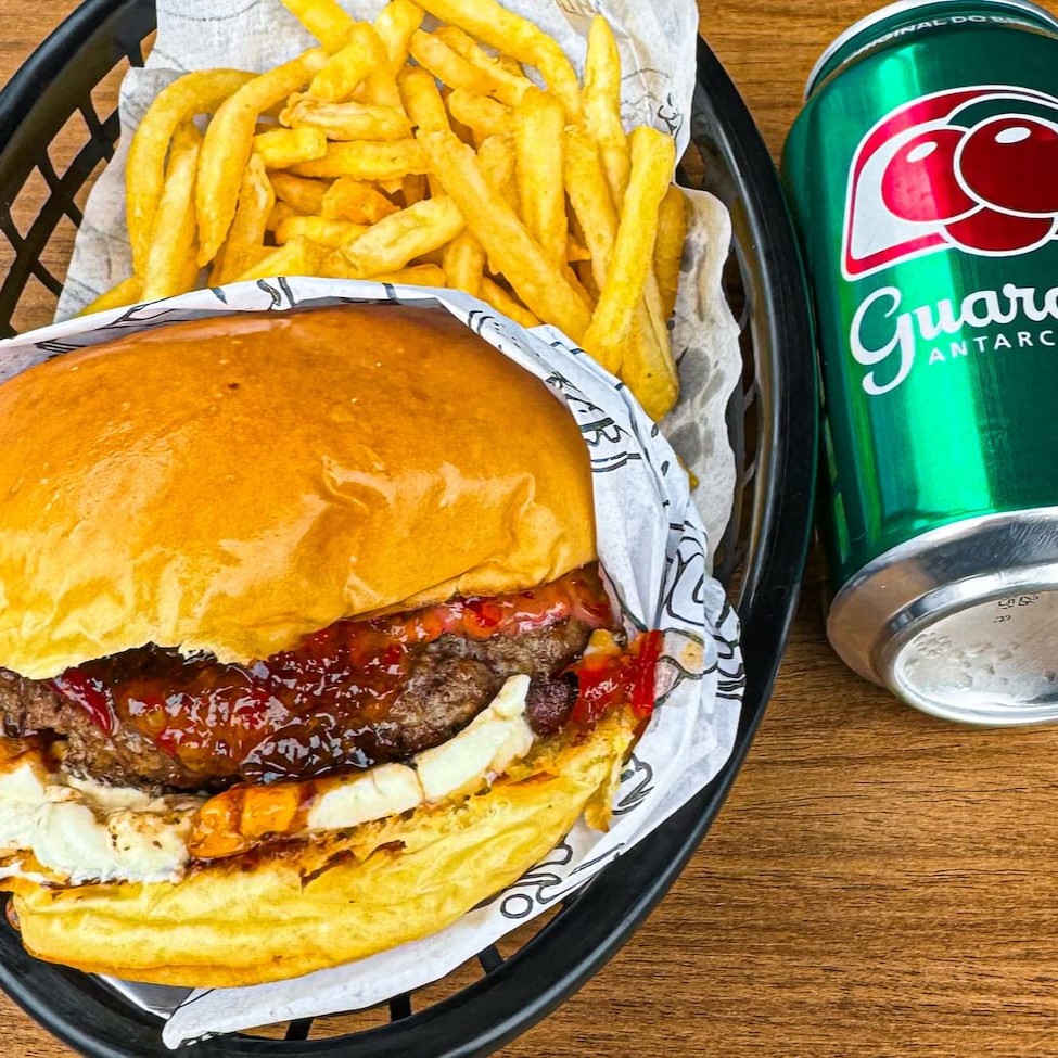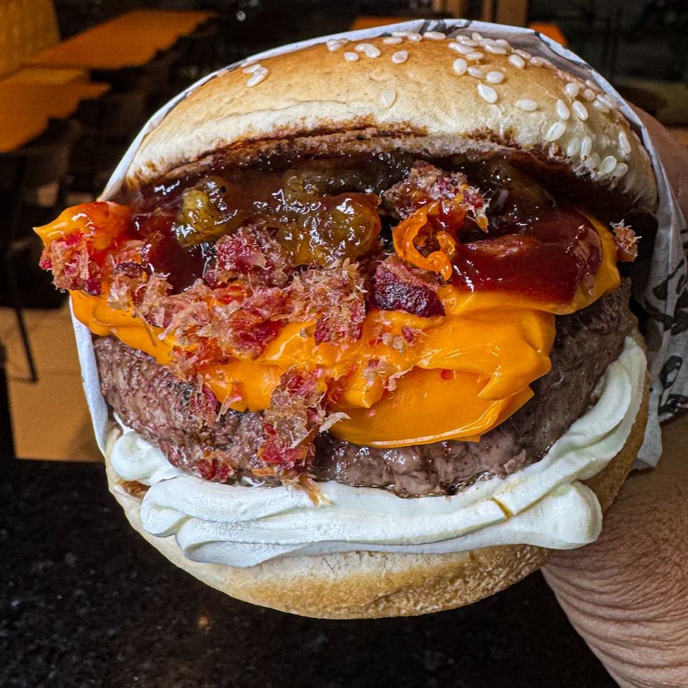 Uma Explosão De Sabor! Delicioso Pão brioche selado na manteiga, cream cheese, bacon triturado, blend 160g, queijo provolone, geleia de pimenta meio agridoce e barbecue