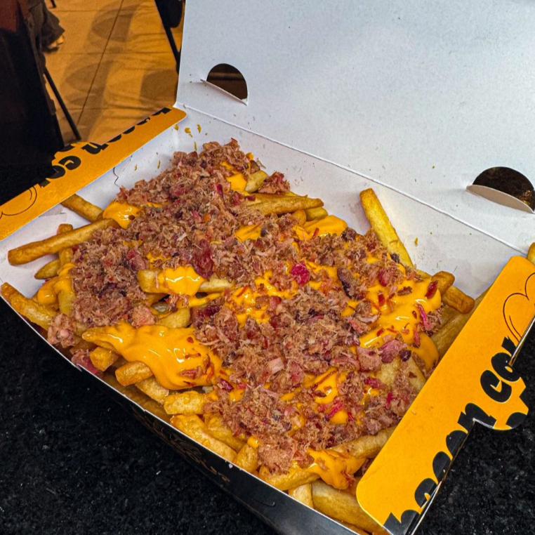 Fritas, Catupiry Original, costela desfiada saborosa e barbecue! você precisa pegar uma dessa - serve 2 pessoas