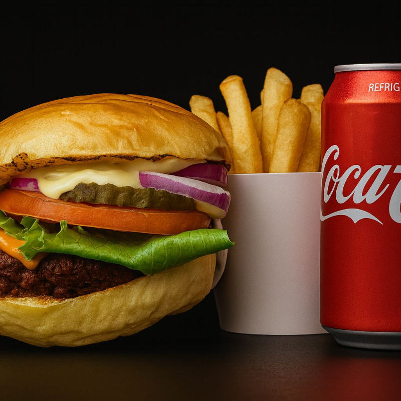 Hamburguer de frango+fritas+refrigerante lata 350ml