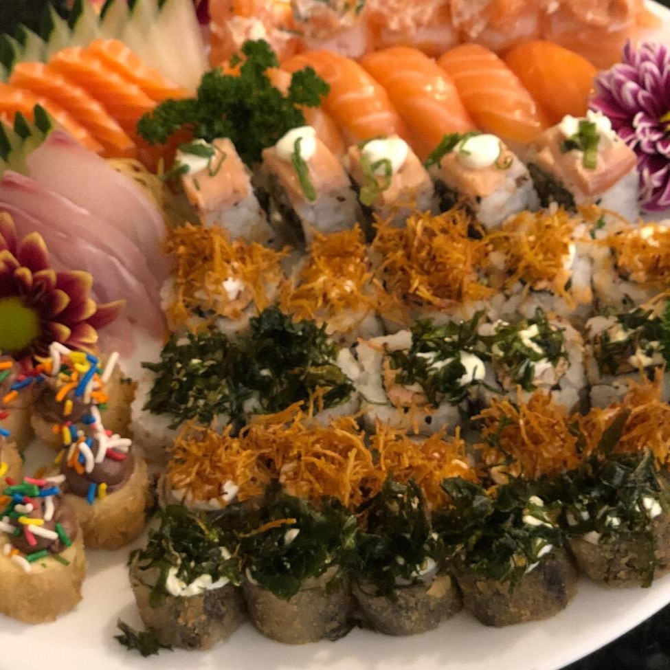 5 Uramaki Salmão 5 Jhou Camarão 5 Jhou Salmão Com Ovas 5 Niguiri De Salmão 5 Niguiri De Camarão 5 Hot Roll 5 Hot Couve