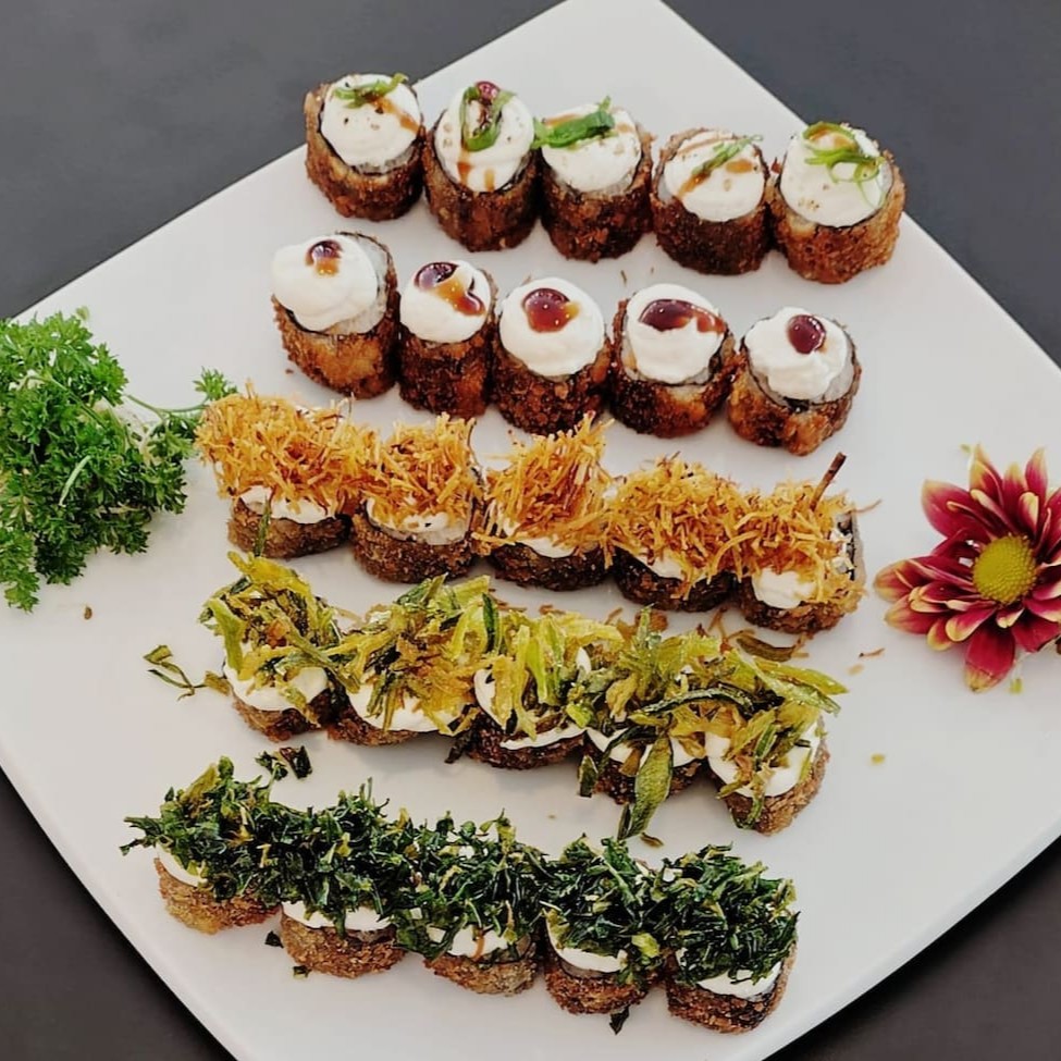 Delicie-se com a frescura do nosso peixe branco, a tilápia, que harmoniza perfeitamente com a textura suave do cream cheese. Envolvidos em folhas de nori e finalizados com cebolinha picada, este prato é uma explosão de sabores que vai encantar seu paladar. Uma escolha leve e deliciosa que promete tornar sua experiência gastronômica ainda mais especial!