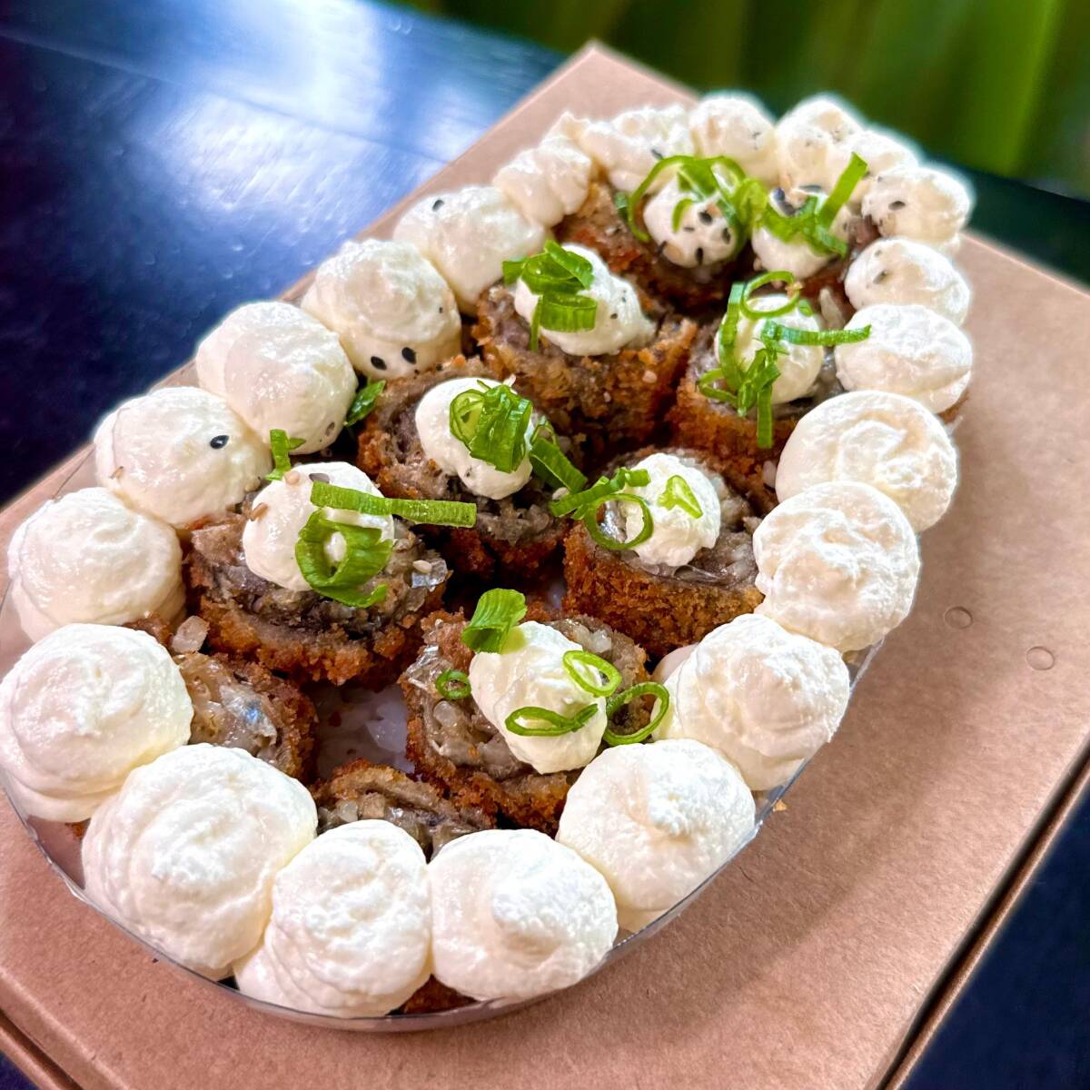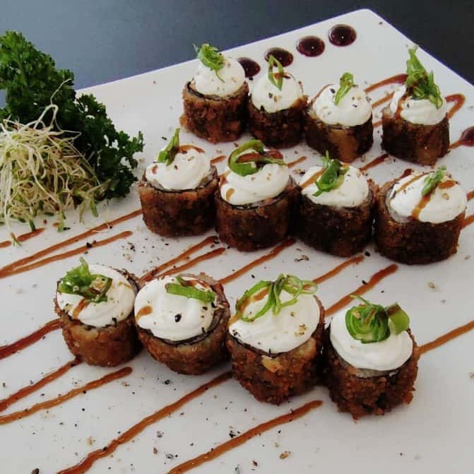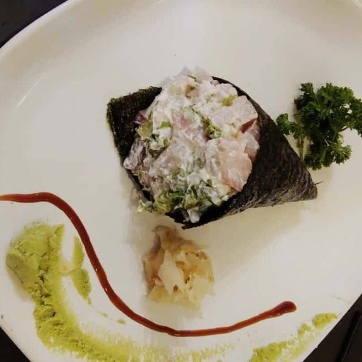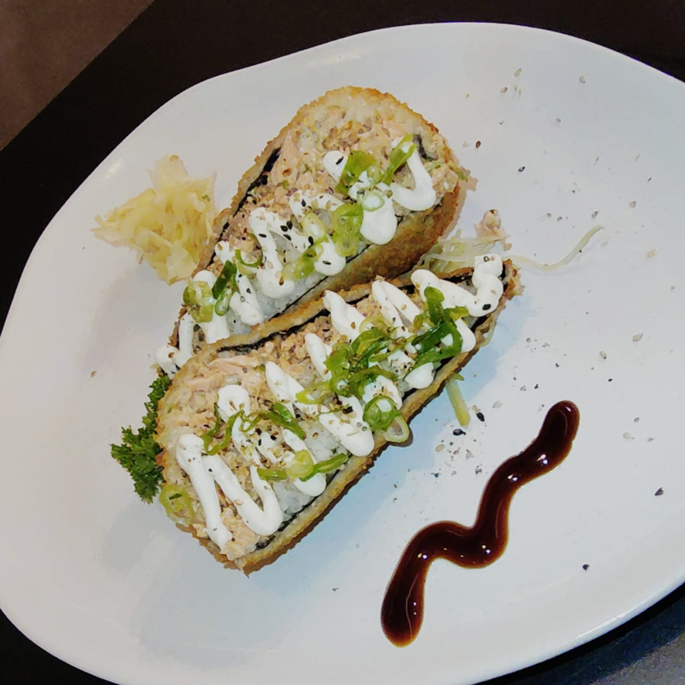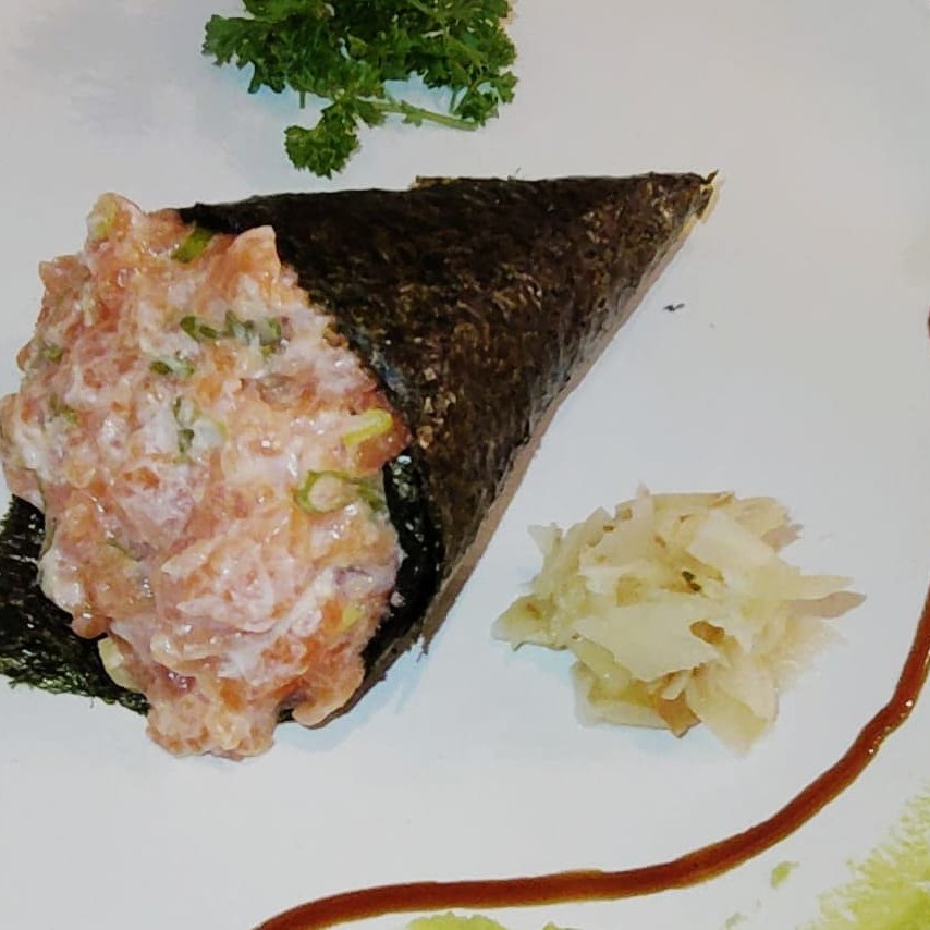 Delicie-se com nossa irresistível combinação de atum fresco, envolto em alga nori crocante, com o frescor da cebolinha e a cremosidade do cream cheese. Uma explosão de sabores que une a tradição da culinária japonesa com um toque especial, perfeita para quem deseja saborear uma experiência única e memorável. Não perca a chance de experimentar essa deliciosa criação!