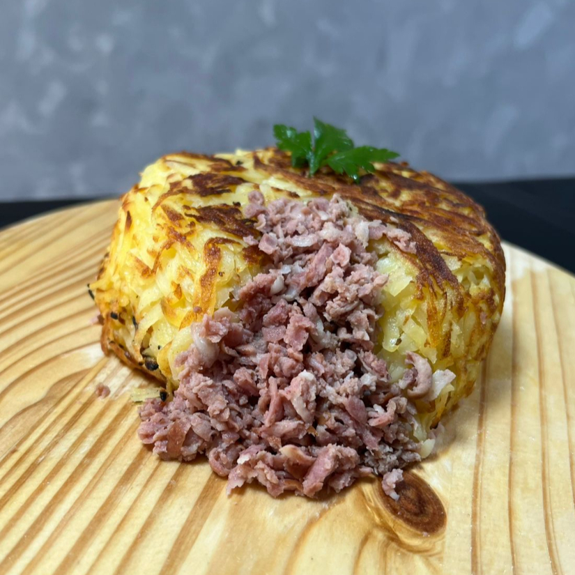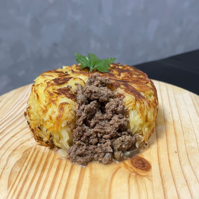 BATATA RALADA TOSTADA NA MANTEIGA COM RECHEIO DE CARNE MOIDA *Podendo incluir junto aos recheios os adicionais*