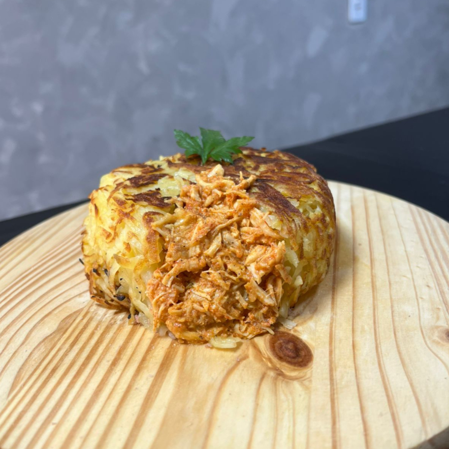 BATATA RALADA TOSTADA NA MANTEIGA COM RECHEIO DE FRANGO *Podendo incluir junto aos recheios os adicionais*