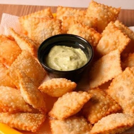 Massa crocante saborosa com muito recheio de carne seca com Catupiry bem caprichado e bem graúdos .