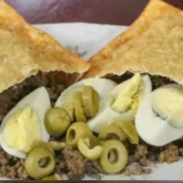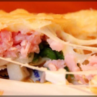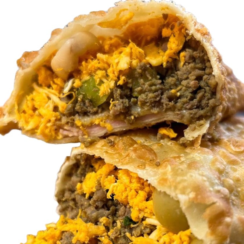 Pastel especial com frango , carne , azeitonas , milho, ervilha, bacon , queijo , presunto , catupiry, cheddar