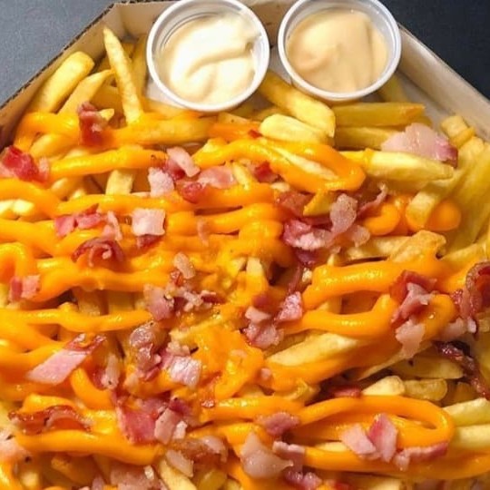 Batata frita com bacon de 25 Cm muito Crocante e saborosa com muito molho e bastante bacon . O cliente poder adicionar os seguintes molhos barbecue , catchup, maionese, mostarda ,molho verde .
