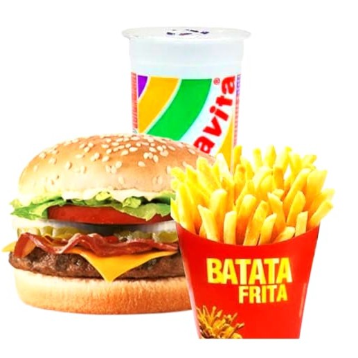 X bacon com pão carne queijo bacon alface tomate e molho especial da casa , super caprichado no bacon Com batata bem crocante na caixinha e 1 guaravita bem gelado.