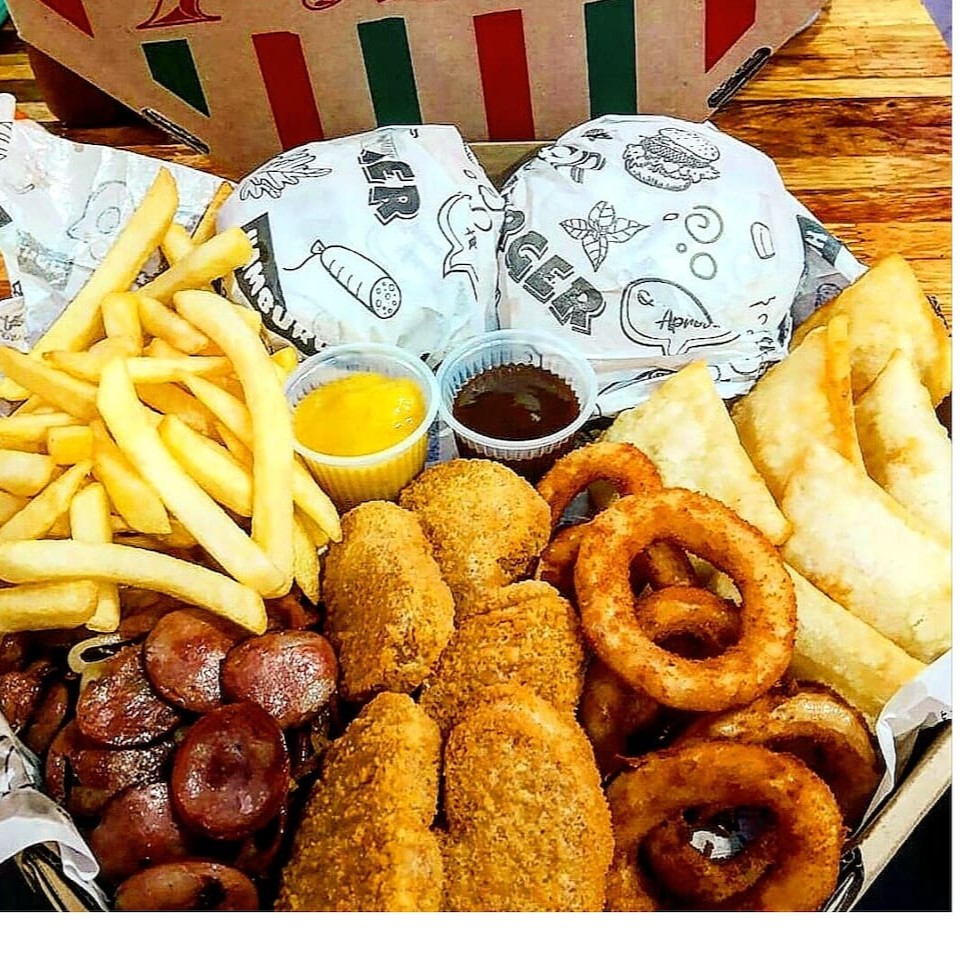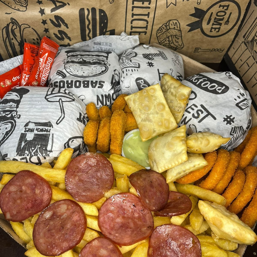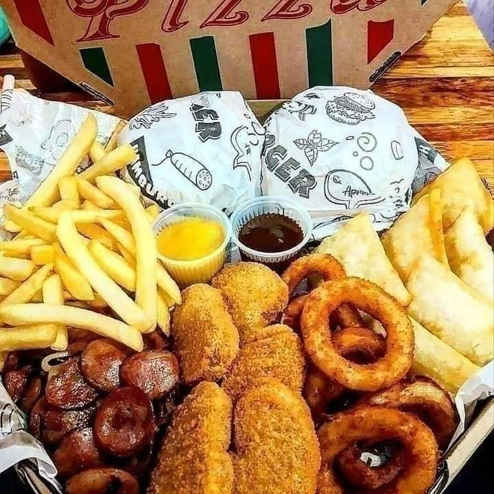 Combo com 1 x tudo + batata + calabresa + nuguet + anéis de cebola + mini pastel + 1️⃣ Refrigerante De 2 Litros. Combo muito bem recheado feito com muito carinho e muito capricho.
