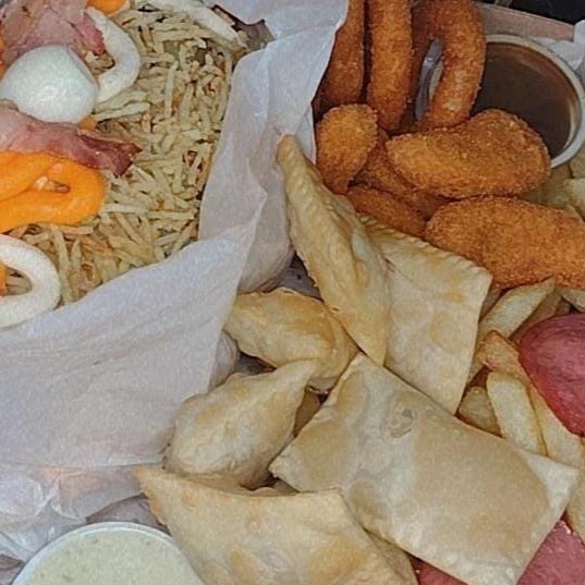 Este combo esbanja sabor e diversidade, unindo o frescor do camarão, a crocância perfeita das batatas fritas, a delicadeza dos ovos de codorna, o sabor intenso do bacon, a marcante calabresa, a cremosidade do cheddar e a suavidade do Catupiry. Tudo isso servido de maneira generosa em uma caixa de pizza, ideal para quem busca um petisco diferenciado e singular. O camarão, sempre fresquinho, e a batata, estaladiça ao extremo, são os grandes destaques. Uma combinação verdadeiramente irresistível!