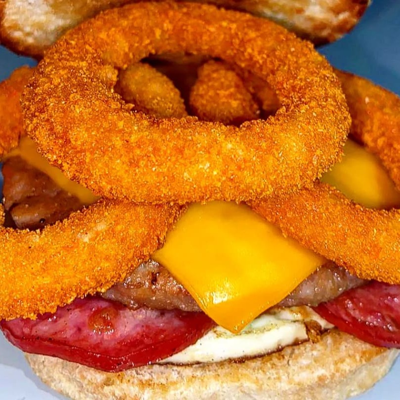 3 Anéis De Cebola Bacon Calabresa Cheddar Carnes Ovo Molho Artesanal