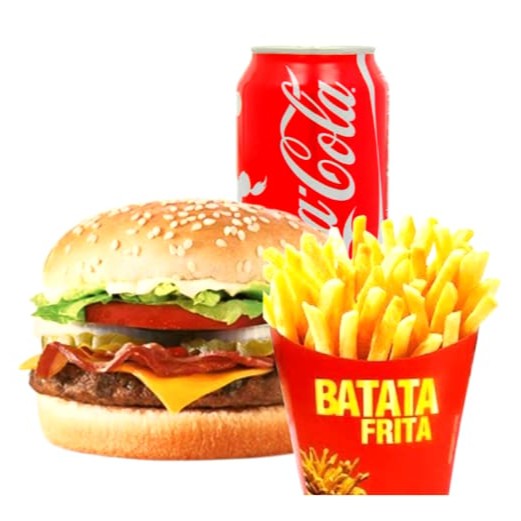 X bacon com pão carne queijo bacon alface tomate e molho especial da casa , super caprichado no bacon Com batata bem crocante na caixinha e 1 coca cola lata bem gelado