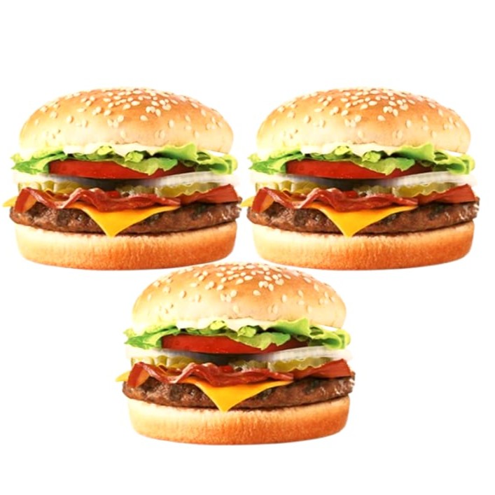 Três x bacon caprichado com pão carne queijo bastante bacon molho especial alface tomate.