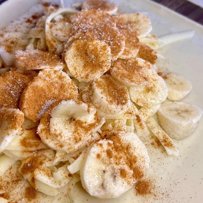 Apresentamos nosso 'Pastel Premium' de 'Banana com Queijo e Canela', uma verdadeira joia gastronômica. Esta delícia é generosamente recheada com banana madura, queijo derretido e um toque suave de canela. A massa, crocante e dourada, é cuidadosamente aromatizada, proporcionando um contraste perfeito de sabores. Cada mordida é uma experiência irresistível, fazendo deste pastel uma opção incomparável. Prepare-se para uma experiência culinária inesquecível.