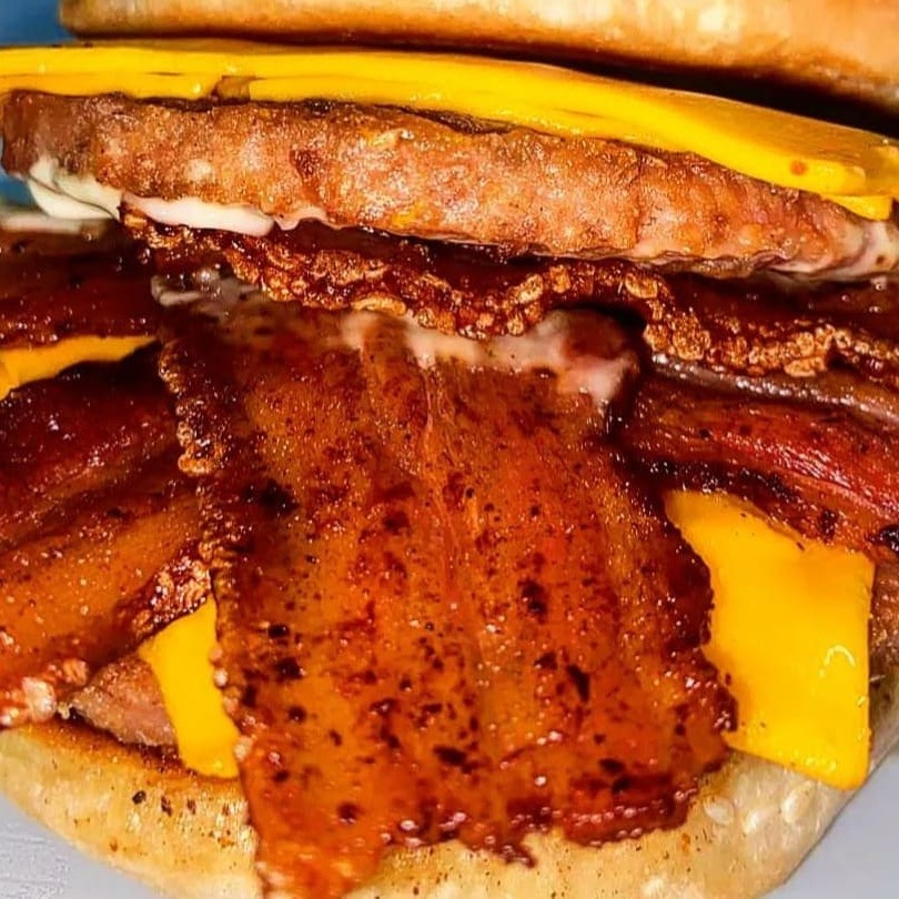 *Novidade * Especial Bacon 4 Fatias Grandes De Bacon Tostadas 4 Fatias De Cheddar 2 Carnes 1 Molho Artesanal
