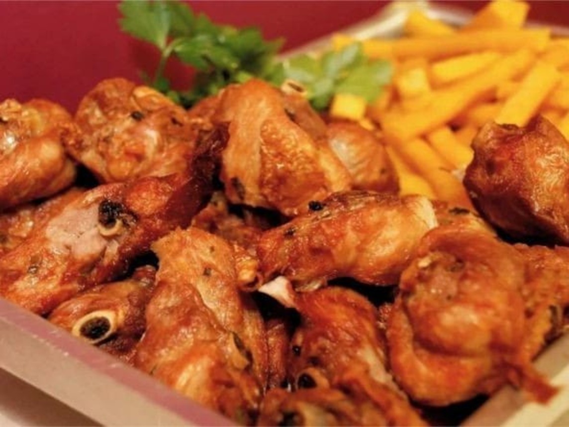 1kg de frango,500 gramas de batata,salada e molho especial