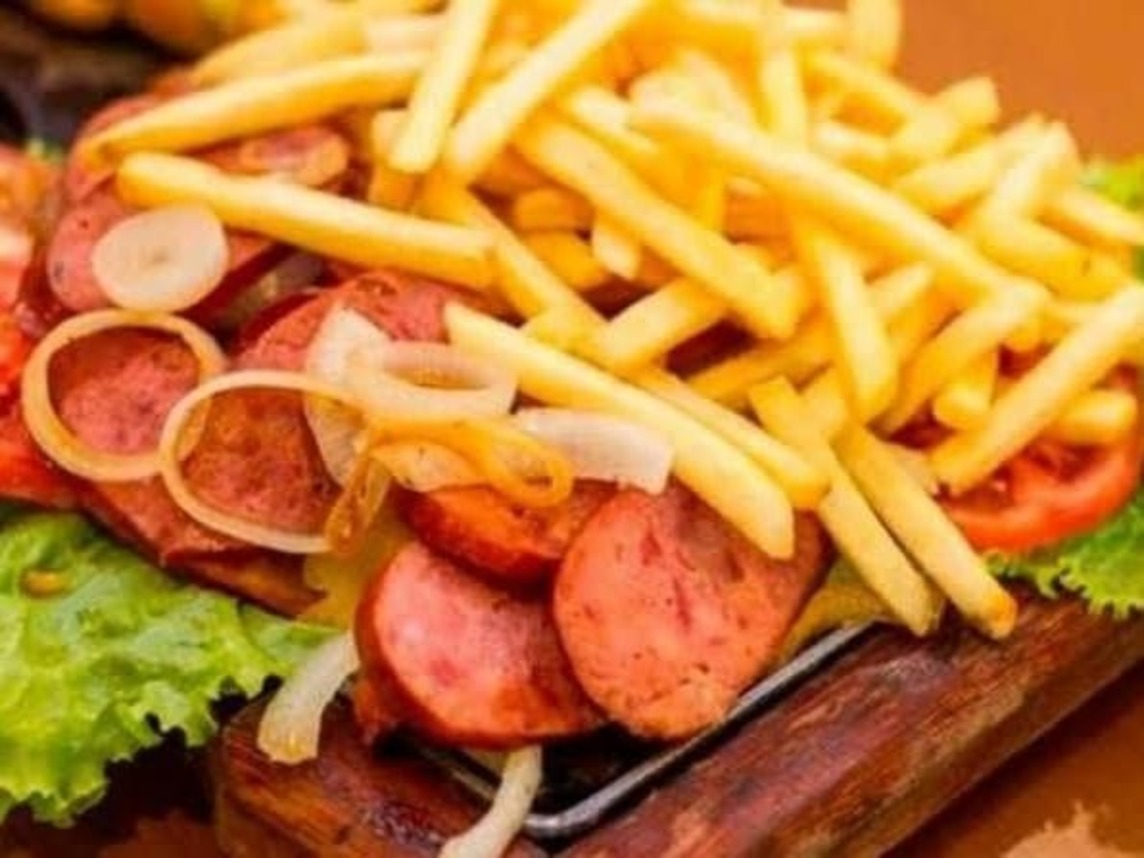 600 gramas de batata, Catupiry Original, cheddar, calabresa, bacon, mussarela