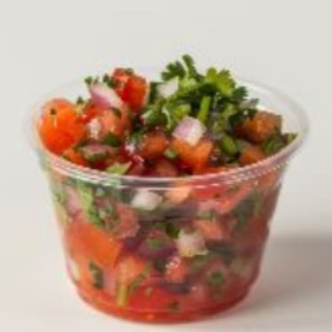 Porção 100ml. Molho apimentado com cubinhos de tomate, de cebola, cheiro verde e limão
