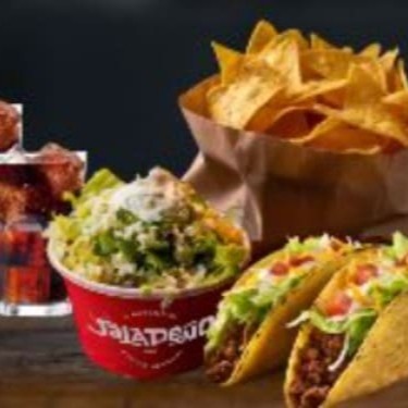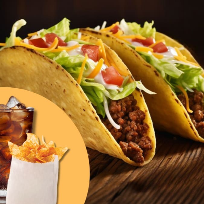 Dois tacos com pico de gallo, guacamole, sour cream, alface e proteína a escolha. Acompanha uma bebida e nachos.