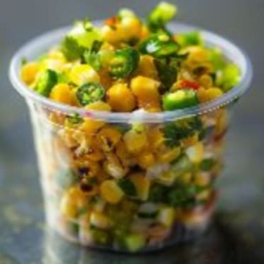 Porção 100ml. Milho grelhado com pimenta jalapeno e coentro