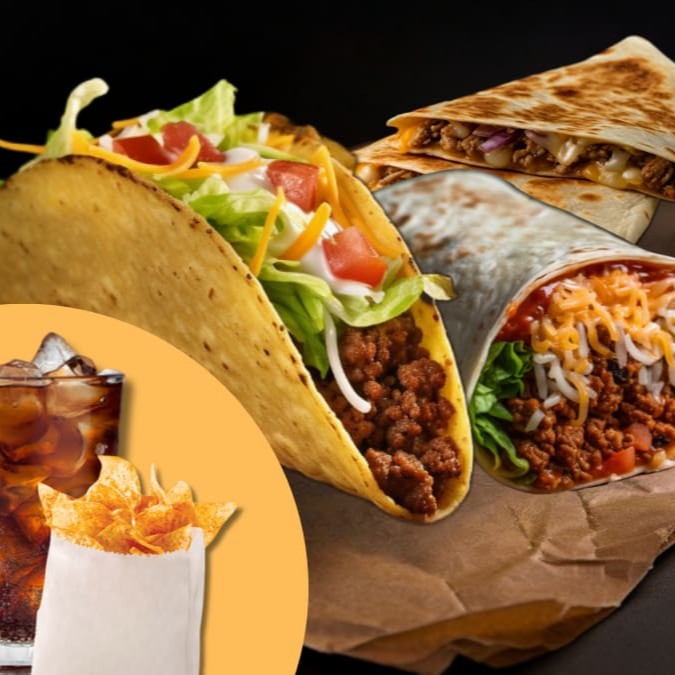 Para os indecisos colocamos todos os pratos em um único combo!! Um mini burrito, um taco e uma mini quesadilla acompanhadas de uma bebida e nachos!