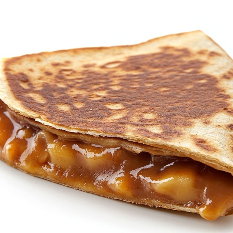 Tortilha de chocolate recheada com blend de queijos grelhados e doce de banana.