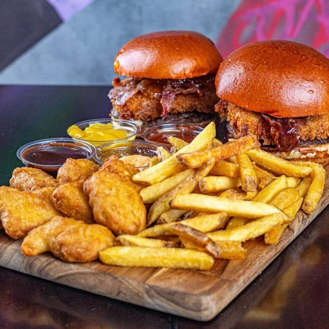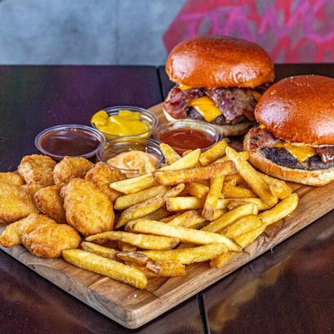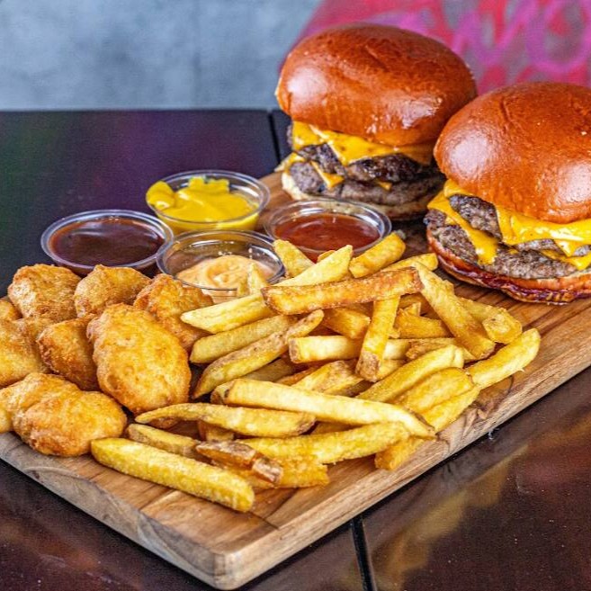 2 Cheddar Bacon + 4 Molhos + Fritas e Nuggets Supreme