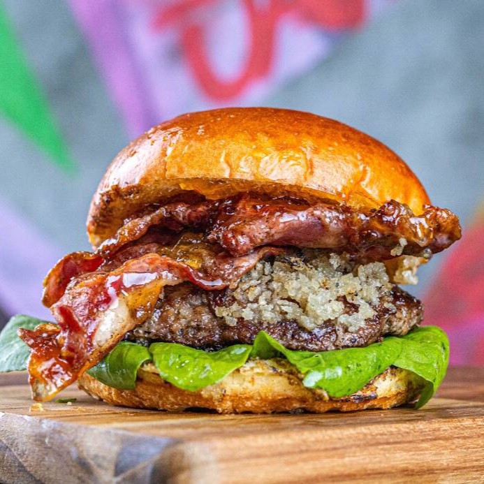 Graziô - O hambúrguer dos apaixonados por sabores intensos! Nosso pão brioche macio abraça dois blends exclusivo de 130g cada de carne suculenta, complementado por uma irresistível combinação de mussarela empanada crocante, geleia de pimenta adocicada e deliciosas fatias de bacon. Prepare-se para uma explosão de sabores em cada mordida!