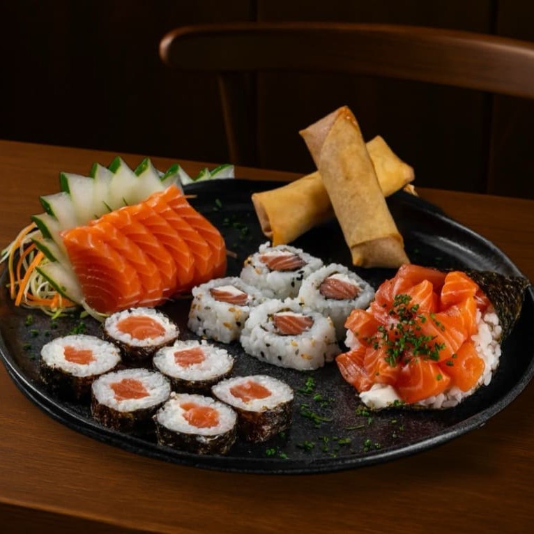Combo Combinado Japa 24 Peças Leve Grátis Sobremesa Harumaki Doce De Leite