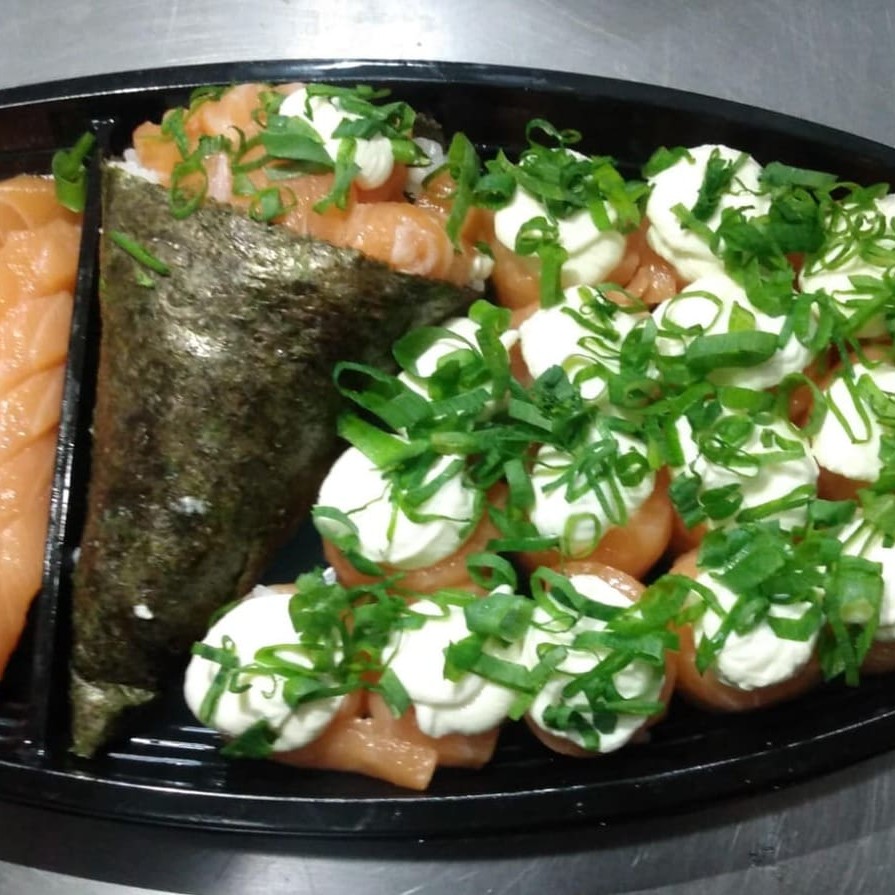 12 haru hot salmão + 12 hots filadélfia + 1 temaki hot + barca