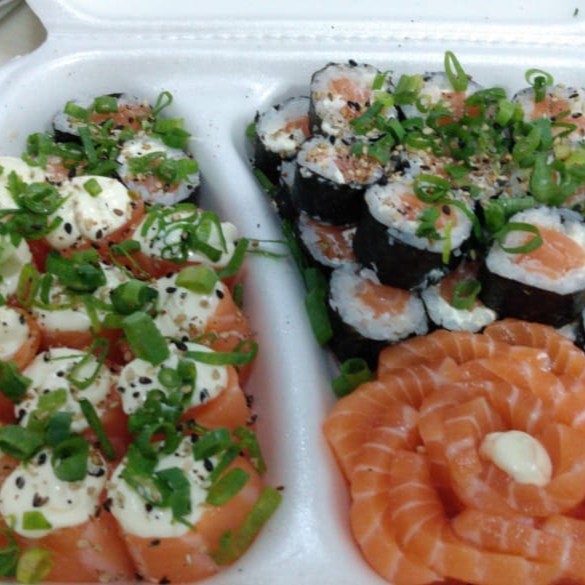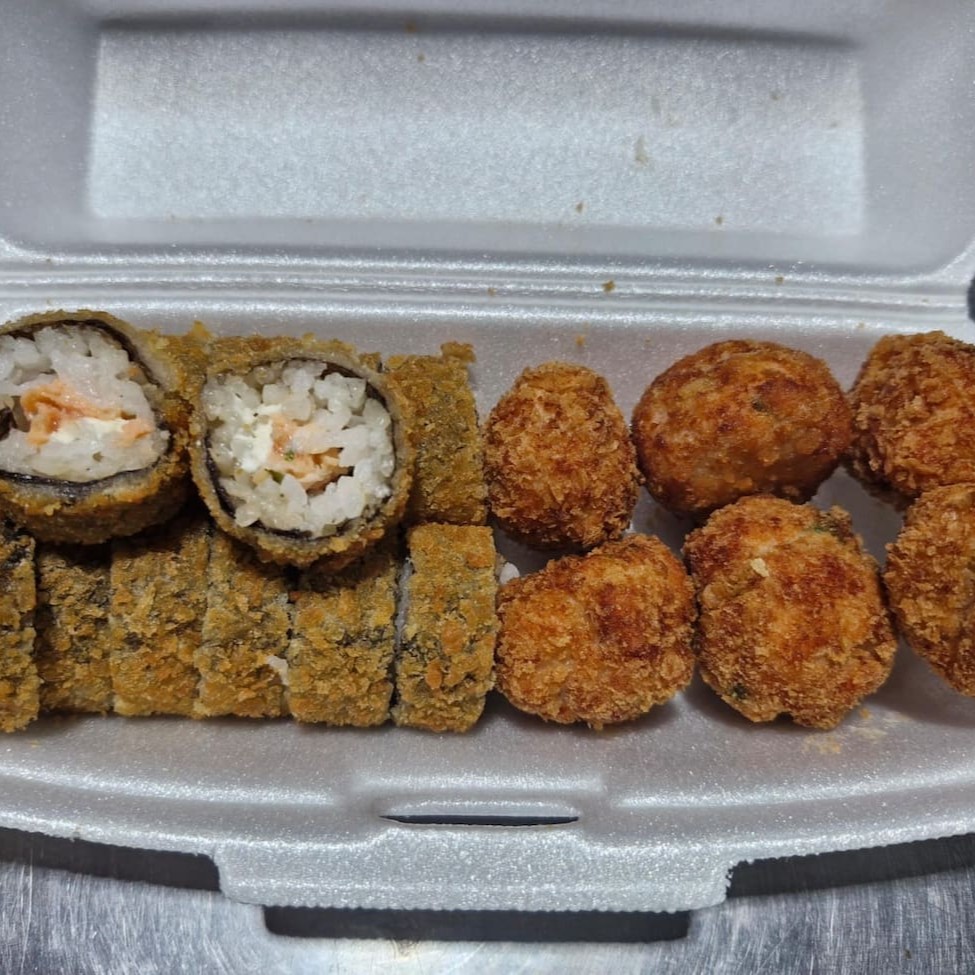 - 6 hots filadélfia - 6 holls filadélfia - 6 joe joe tradicional - 6 sashimis salmão - 1 harumaki doce de leite