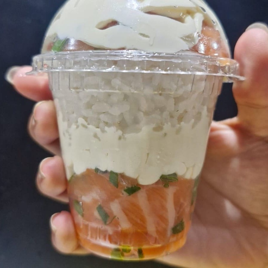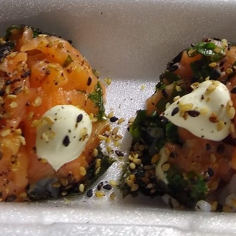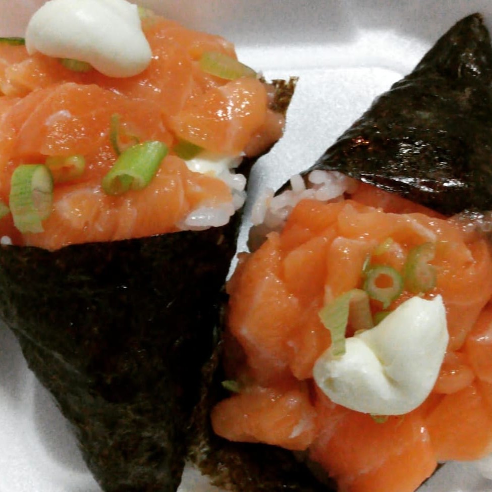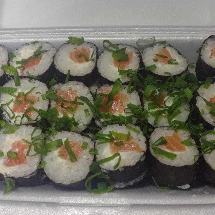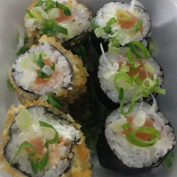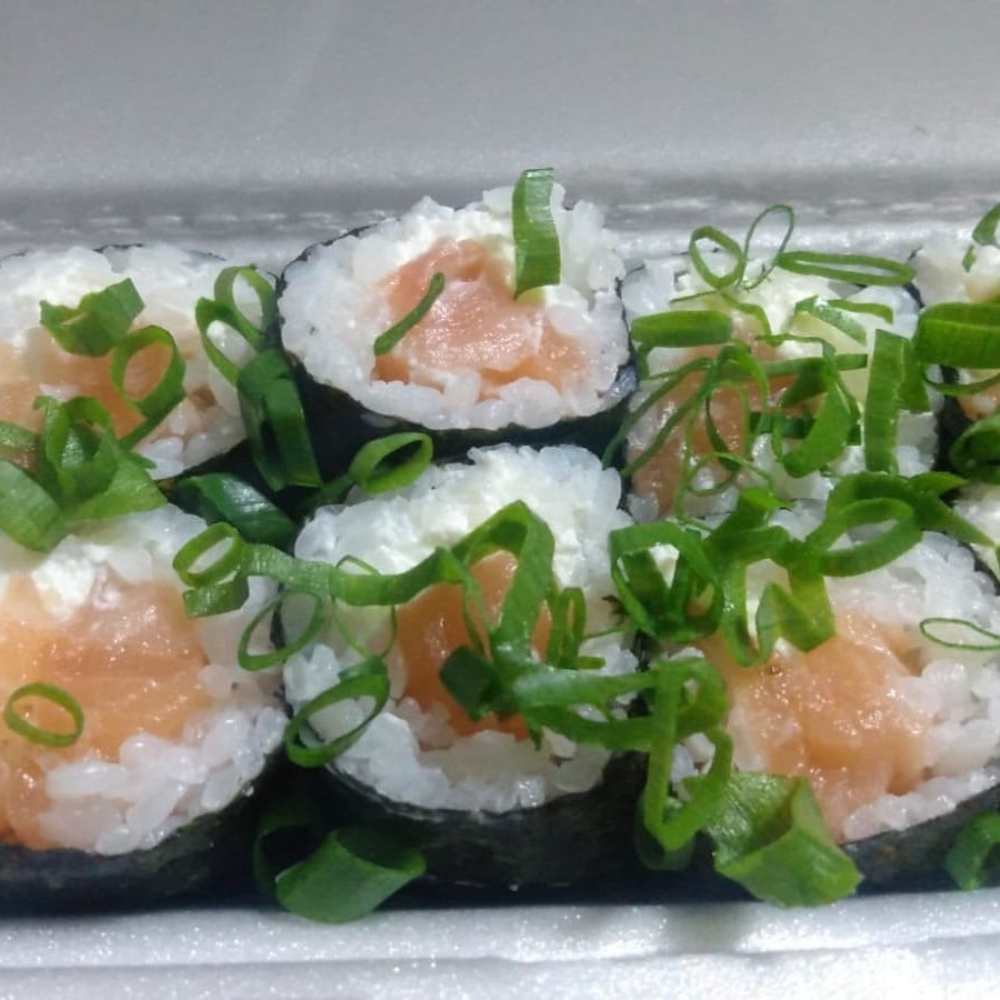 Alga, arroz, salmão e cebolinha. Sem cream cheese.