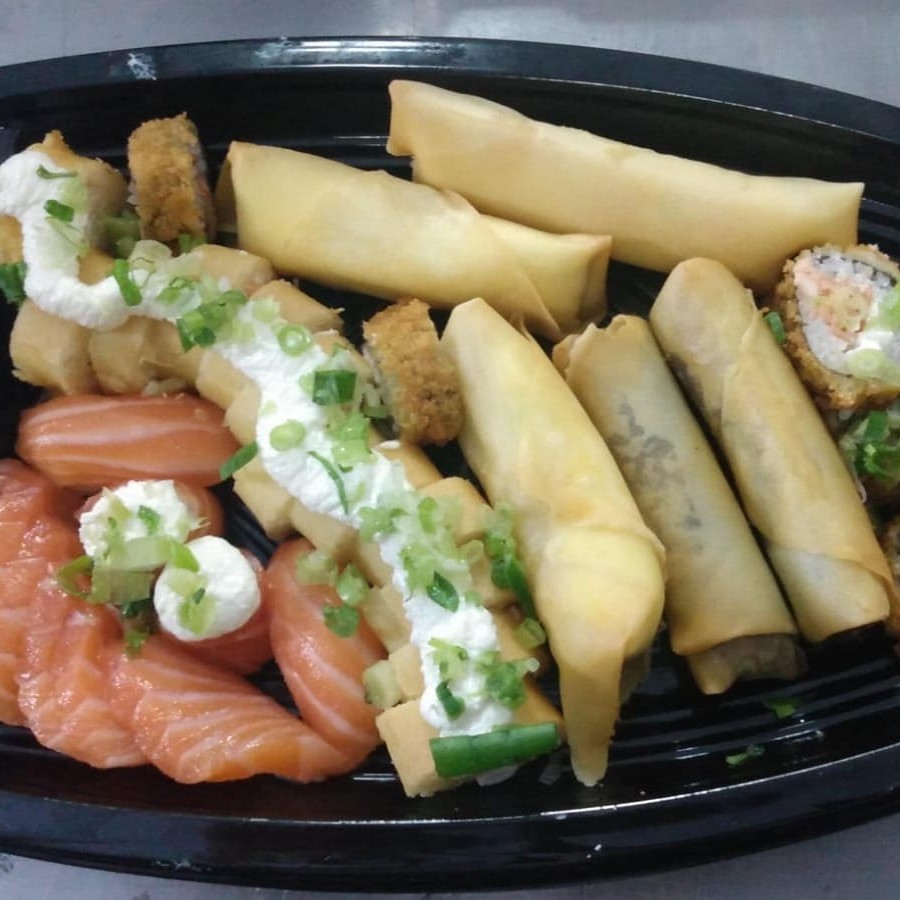 - 12 hots filadélfia - 12 holls filadélfia - 6 joe joe tradicionais - 6 sashimis salmão - 2 harumakis salmão - 2 harumakis doce de leite
