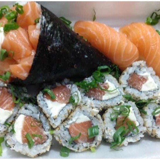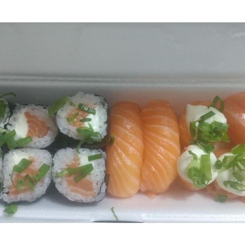 3 duplas sushi salmão + 12 holls filadélfia + 10 uramakis filadélfia + 6 joe joe tradicionais