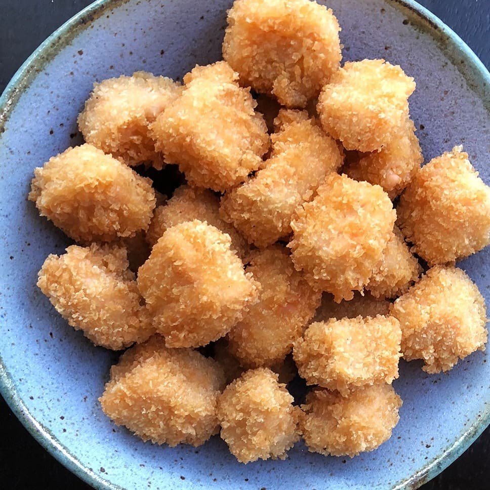 12 hots filadélfia, 5 camarões empanados, 5 salmão cubes crocante e 5 kani cubes crocante