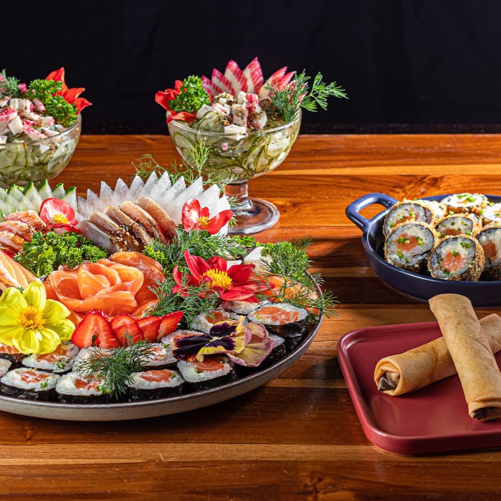 2 Ceviches Mistos Pequenos 8 Sashimis Salmão 4 Sashimis Salmão Roast 8 Sashimis Atum Roast 2 Sushis de Salmão 2 Sushis Skin 12 Maki Rolls Filadélfia 12 Hots Filadélfia 2 Harumakis de Banana c/ Doce de Leite
