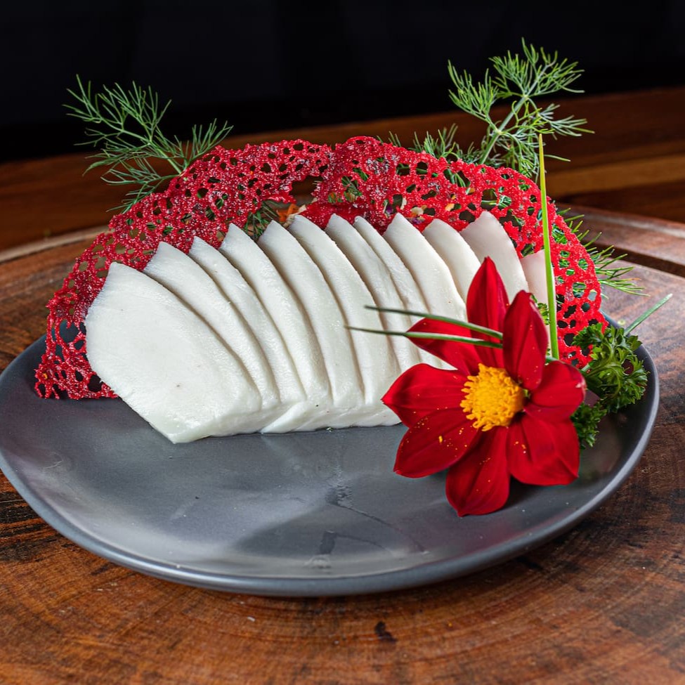 Cubos de Peixe Branco, marinados com Limão, Laranja, Cebola Roxa e Togarashi.