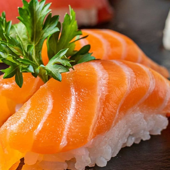 Sashimis (12 salmão, 8 salmão roast), Sushis (6 salmão), Maki Rolls (12 filadelfia, 12 hot filadelfia).