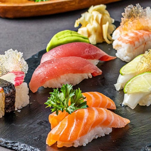 2 Harumakis de Camarão 2 Joes de Salmão 2 Joes Framboesa 8 Sashimis Salmão 6 Sashimis Salmão Roast 8 Sashimis Atum Roast 2 Sushis de Salmão 2 Sushis de Haddock 2 Sushis de Camarão 12 Maki Rolls Filadélfia 12 Hots Filadélfia 2 Harumakis de Banana com Nutella