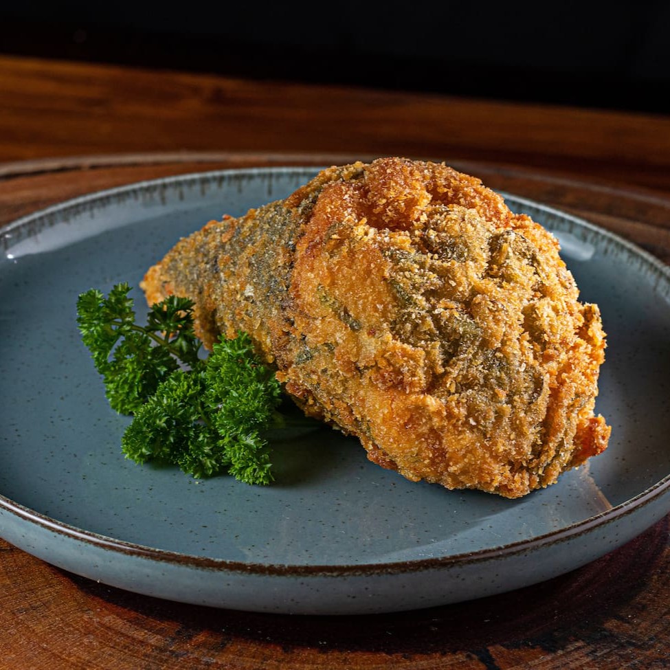 Rolinhos de massa crocante recheados com camarão, requeijão e alho poró. Rolinho primavera.