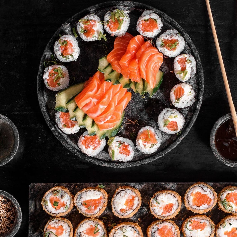 10 Sashimis + 10 Sushis + 12 Filadélfia + 12 Hot Filadélfias