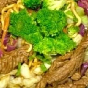 Carne Macarao , acelga, repolho verde ,repolho roxo ,cenoura ,brócolis cebolinha Molho especial