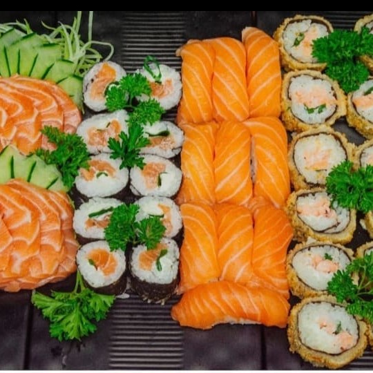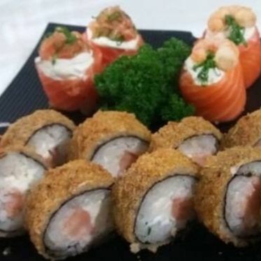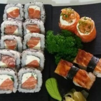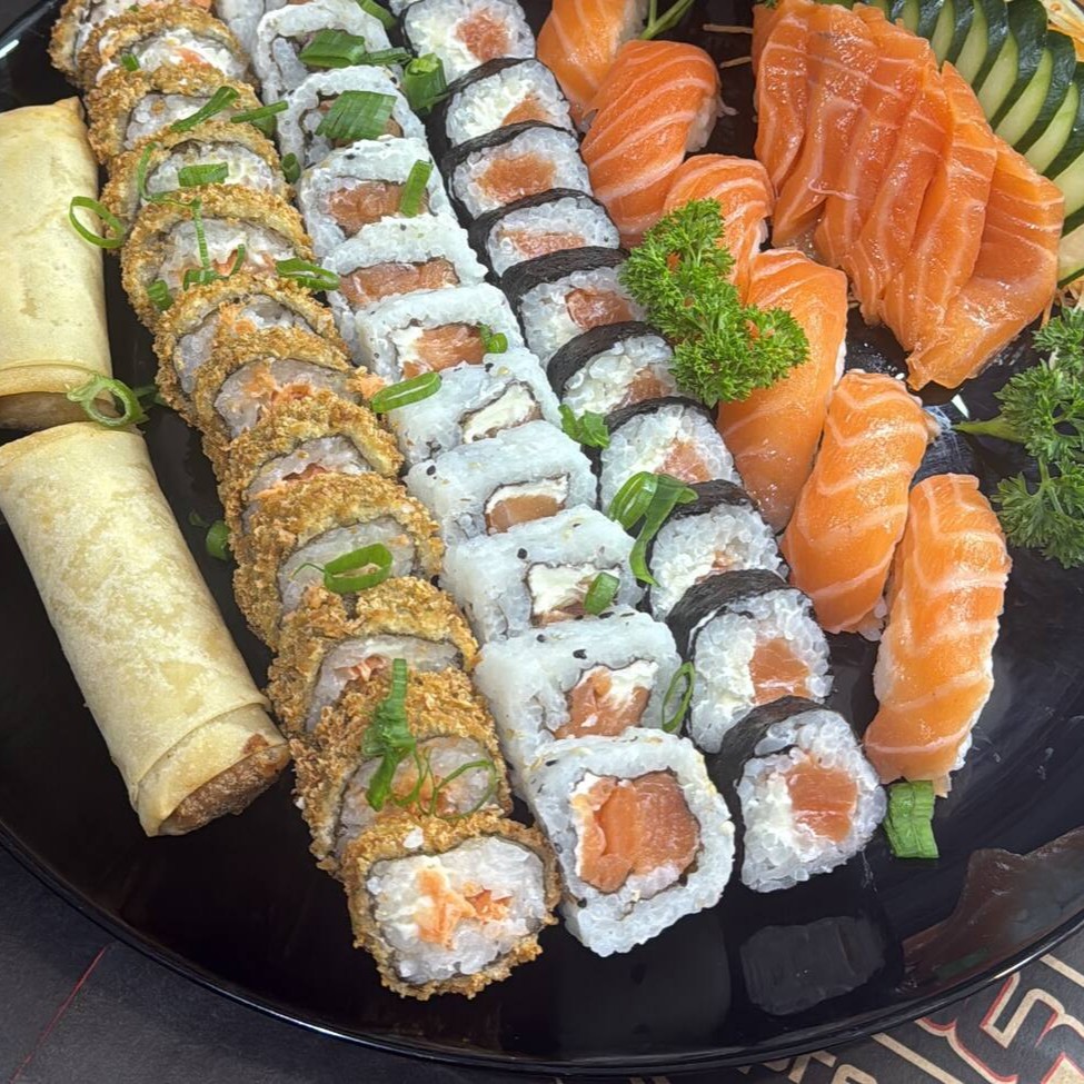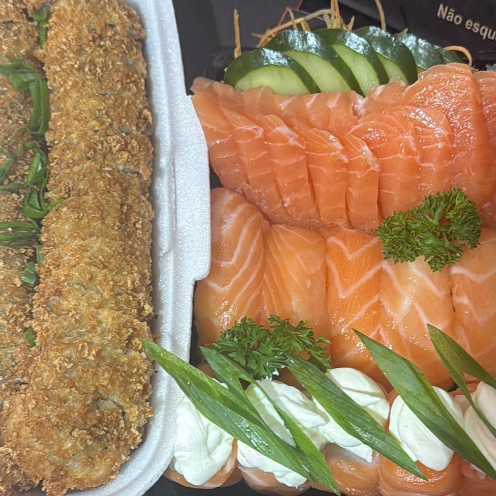 12 filadefia, 12 uramaki, 6 sushi,6sashimis, 12 hots Harumaki doce (2 unidades)