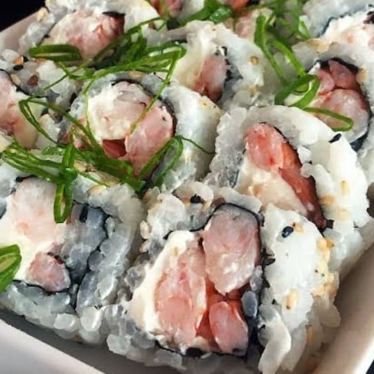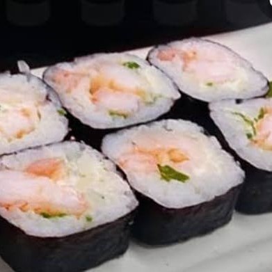 Arroz,camarão,salmao,cream cheese é cebolinha