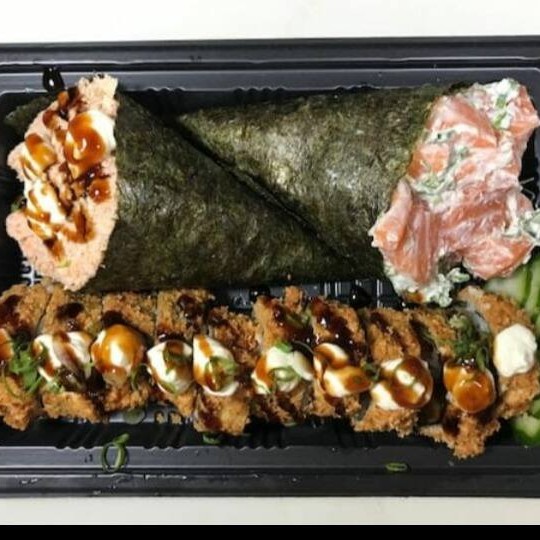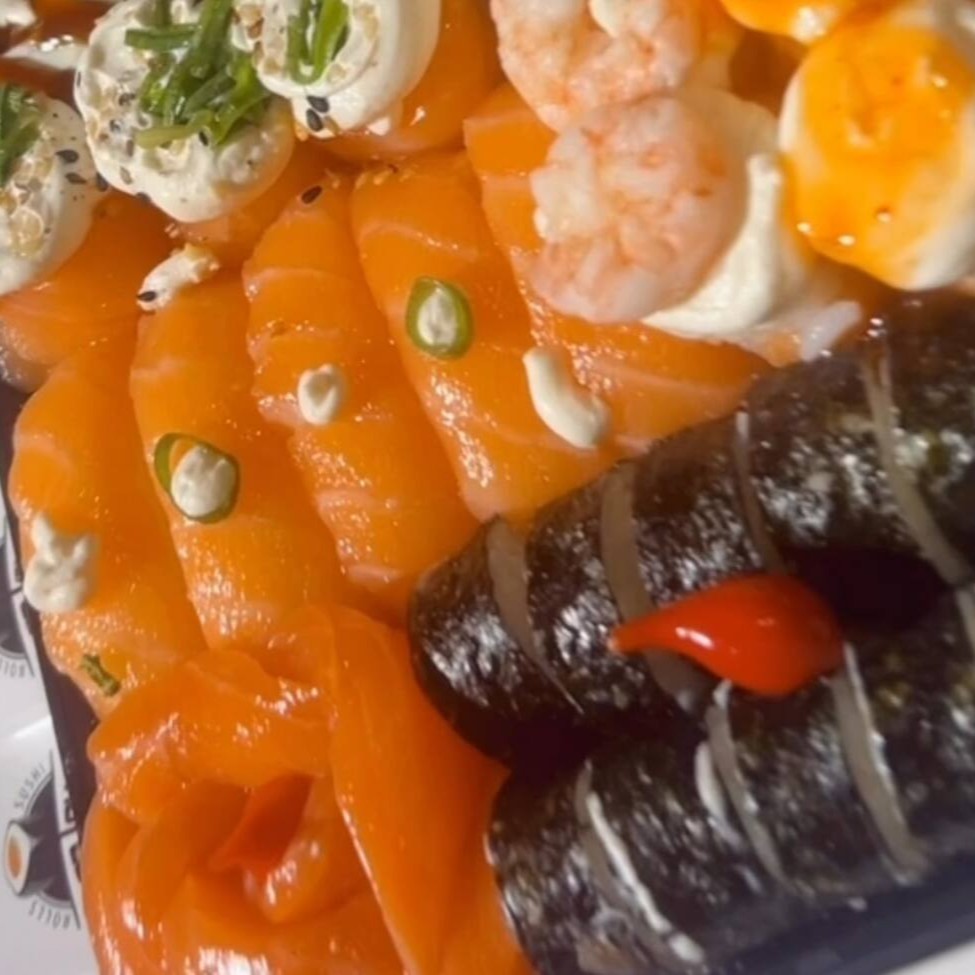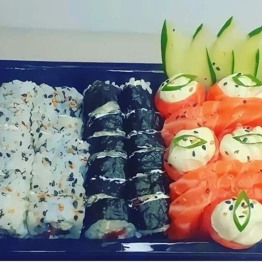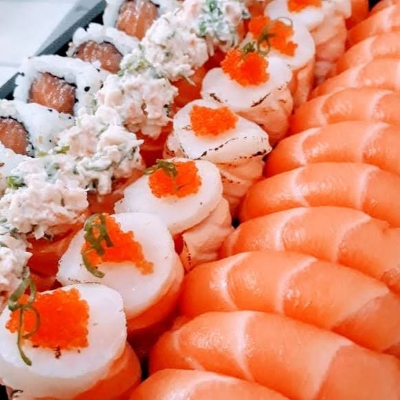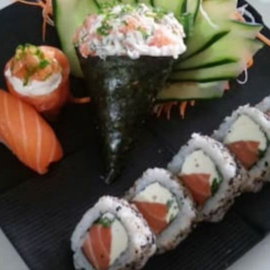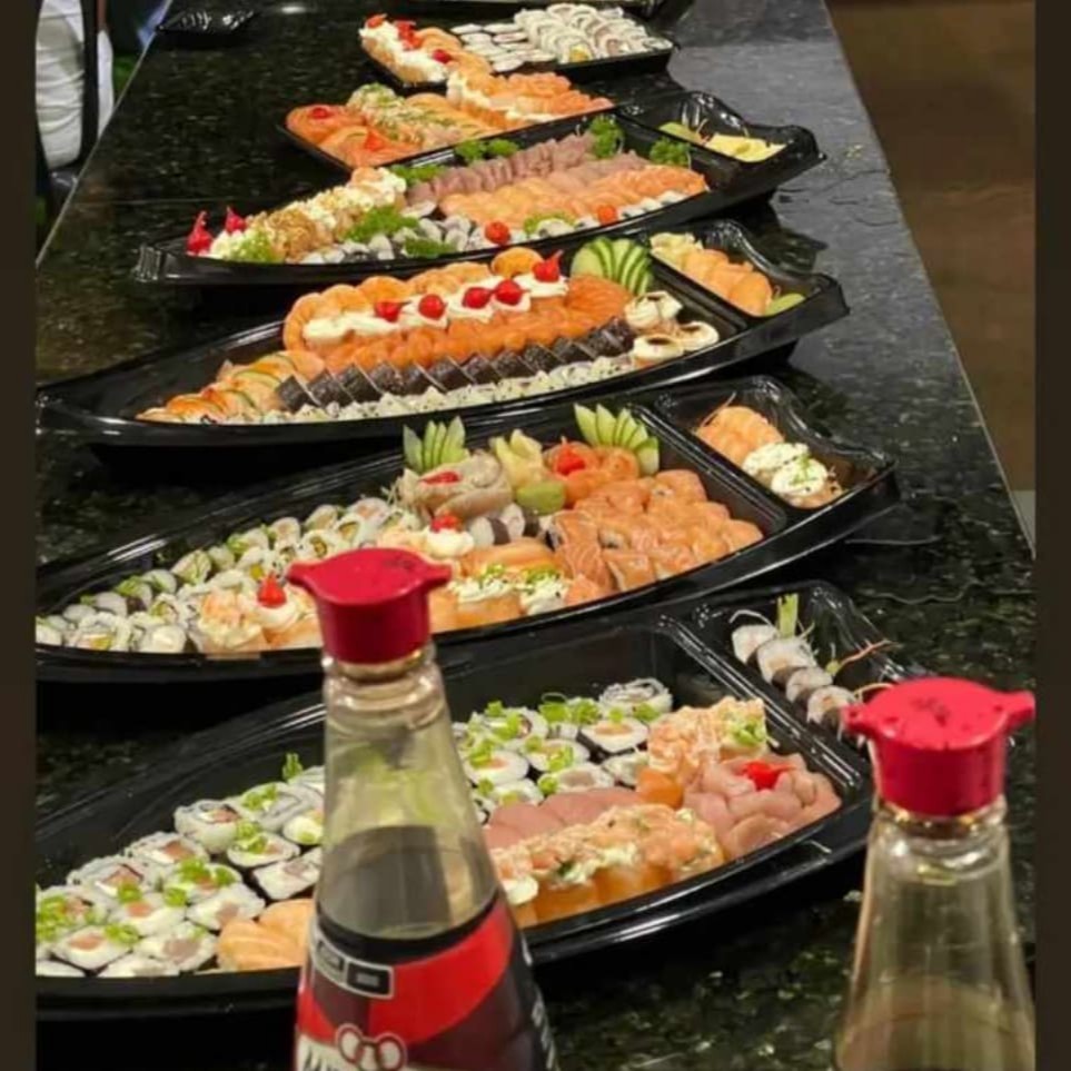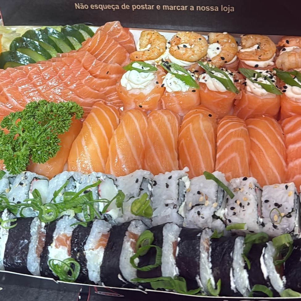 12 fila atum 12 uramaki Kani 5 sushi salmão 5 joy Filadélfia 6 sashimins atum 12 hots salmão 2 harumaki doce