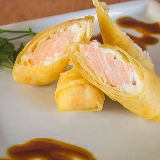3 harumaki salmão 3 harumaki chocolate preto 1 doce de leite
