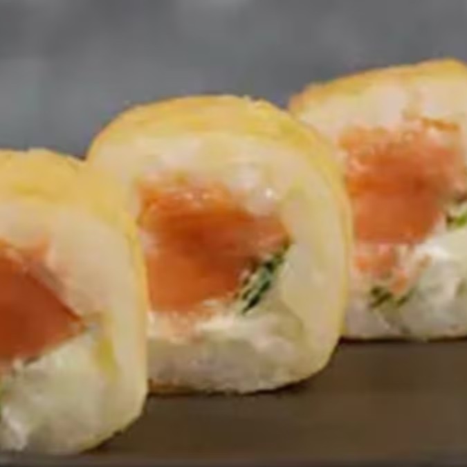 Recheado de hot filadélfia de salmão, arroz japonês e cream cheese