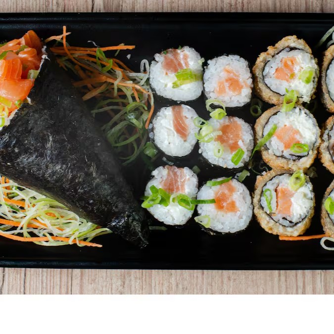 O 'Bentô Salmão ,pertencente à categoria 'Bentô Japartiu', é uma autêntica joia da culinária oriental. Este prato é composto por arroz japonês meticulosamente temperado e perfeitamente harmonizado com suculentos pedaços de salmão fresco, gentilmente grelhados até atingirem uma textura tenra e irresistível. Os legumes vibrantes e cuidadosamente salteados, adicionam um toque extra de sabor e textura, tornando este Bentô uma experiência culinária equilibrada e deliciosa. Este prato é uma combinação perfeita de sabores autênticos japoneses, proporcionando uma verdadeira viagem gastronômica ao país do sol nascente.