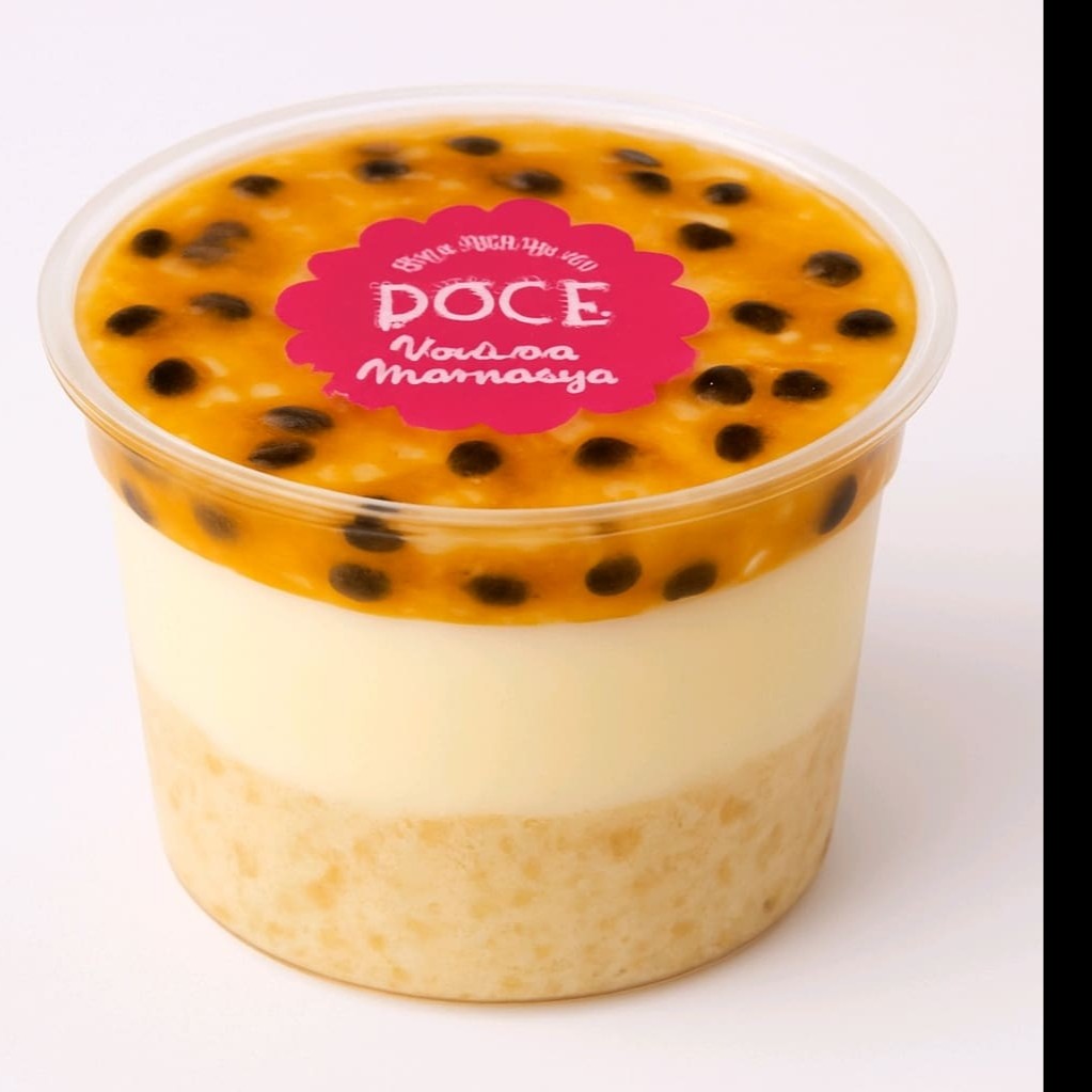 "Massa branca . Camada de recheio cremoso de leite em pó e uma camada de geleia de maracujá levemente azedinho. Uma delícia que combina o doce di leite em pó com o toque cítrico do maracujá. Sirva-se de uma porção generosa, com um bolo macio e um recheio que derrete na boca""."
